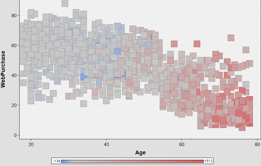 When we relate variables using scatter plots (two images on the right), we can see that Income tends to increase with Age, and that most Webpurchases are made by younger folks (last image on the right).